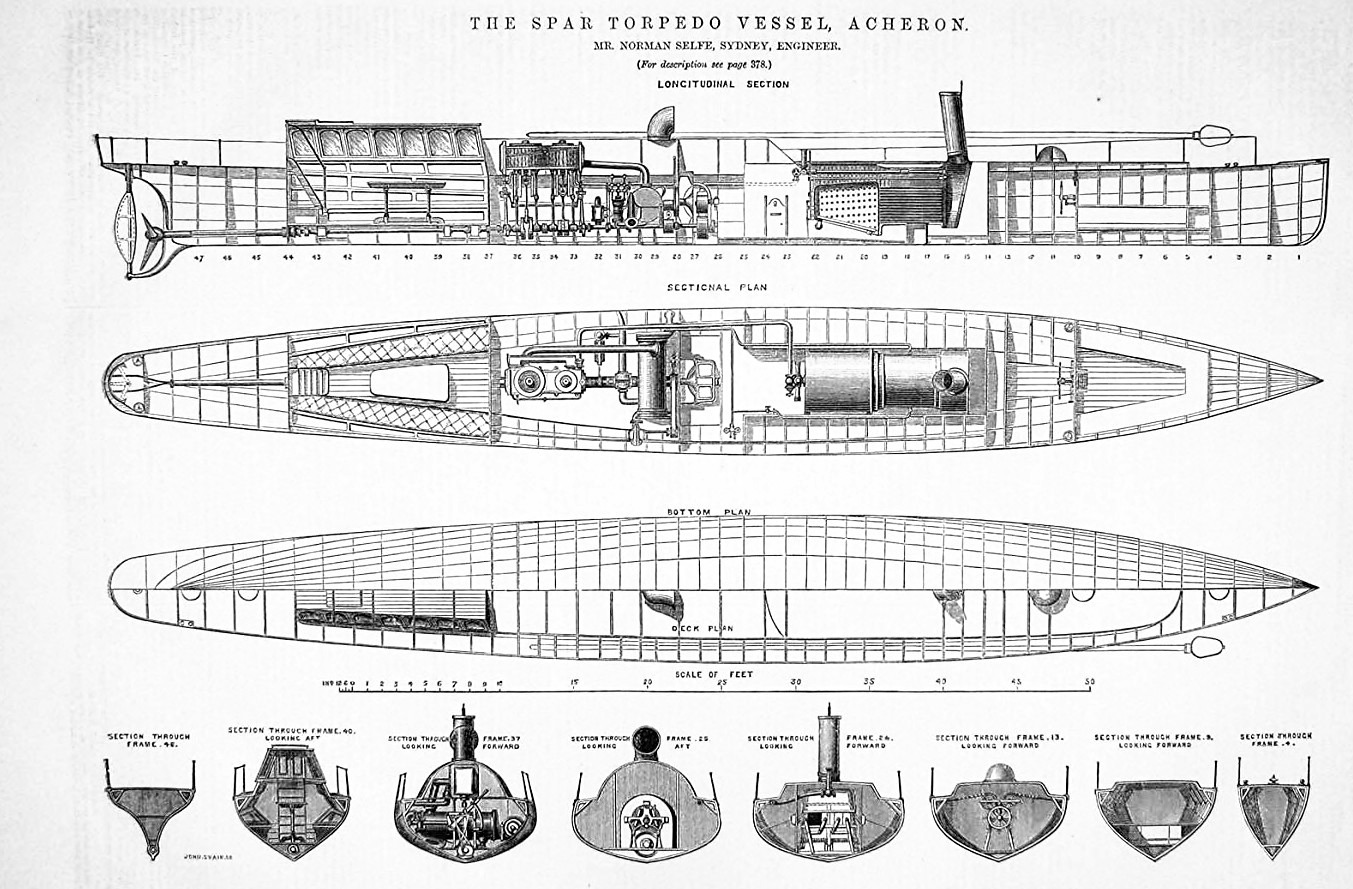 Okręty zostały wyposażone w 2-cylindrowe pionowe maszyny parowe o cylindrach podwieszanychpodwójnego rozprężania ze miedzianym skraplaczem powierzchniowym o średnicy cylindrów 11 i 19 cali (28 i 48 cm) i skoku tłoka wynoszącym 14 cali (35 cm) o mocy 200 ihp napędzających pojedynczą śrubę. Silnik opalany był węglem (zapas bunkra wynosił cztery tony), prędkość maksymalna wynosiła do 16 węzłów. Czasami spotyka się również informację o osiąganiu maksymalnej prędkości w wysokości 18 węzłów. Maksymalne obroty sięgały 350 na minutę. W kwietniu 1878 r. podczas drugiej tury prób odbiorczych na "ACHERON" po przejściu Fortu Macquarie wydano rozkaz "cała naprzód". Mila pomiarowa między Pinchgut a Bradley’s Head została pokonana w cztery minuty i trzydzieści sześć sekund. Wyniki nie były satysfakcjonujące, gdyż dwukrotnie moc silników musiała zostać obniżona z powodu problemów, a ostatecznie jednostka została zawrócona. W następnej próbie inżynierowie byli lepiej przygotowani i okręt pokonał milę w nieco poniżej czterech minut trzynastu sekund. To był najszybszy przebieg mili pomiarowej w Australii. Ostatecznie, w momencie wejścia do służby były to najszybsze jednostki pływające po australijskich wodach.
