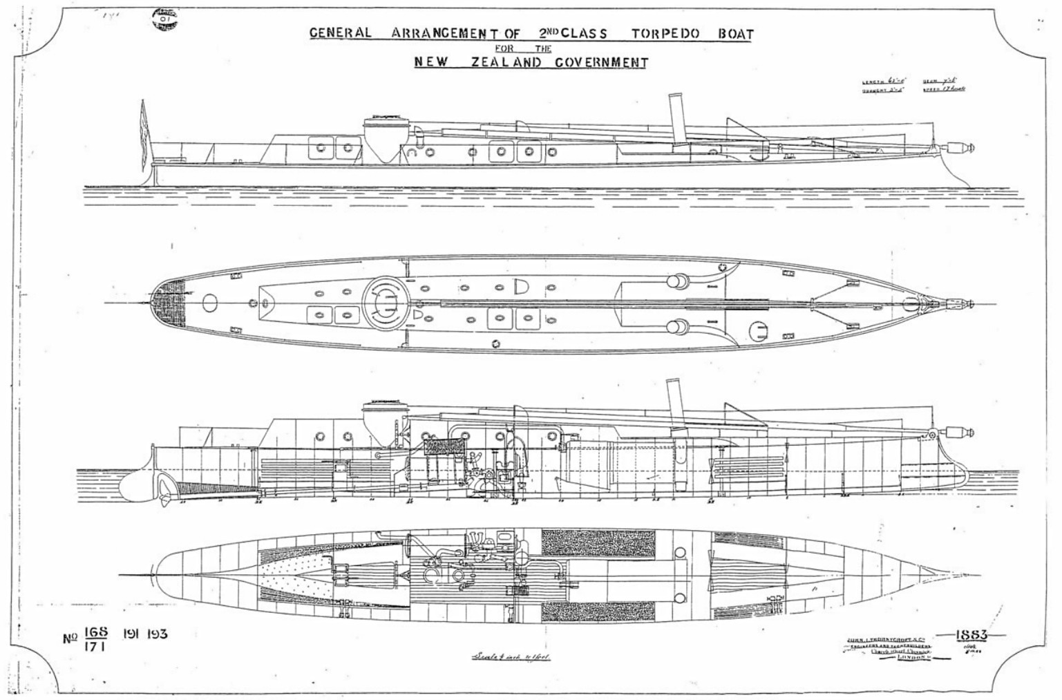 Marynarka wojenna Nowej Zelandii zaistniała jako oddzielna siła wojskowa dopiero w 1941 r. Związek Royal Navy z Nową Zelandią rozpoczął się wraz z przybyciem porucznika (późniejszego kapitana) Jamesa Cooka w 1769 roku, który odbył dwie kolejne podróże do Nowej Zelandii w 1773 i 1777 roku. Okazjonalne wizyty okrętów Royal Navy miały miejsce pod koniec XVIII wieku, aż do podpisania traktatu z Waitangi w 1840 r. William Hobson, kluczowy gracz przy opracowywaniu traktatu, przebywał w Nowej Zelandii jako kapitan Royal Navy. Podpisanie traktatu z Waitangi uczyniło Nową Zelandię kolonią w Imperium Brytyjskim, więc obrona wybrzeża stała się obowiązkiem Królewskiej Marynarki Wojennej. Ta rola była wypełniana aż do I wojny światowej. Poza tym rząd Nowej Zelandii podejmował we własnym zakresie kroki mające na celu podniesienie obronności kolonii, oczywiście współpracując ściśle z rządem Wielkiej Brytanii. Sześć tygodni po opublikowaniu w marcu 1880 roku raportu na temat obrony wybrzeża Nowej Zelandii, który opracował Lieutenant Colonel Peter Scratchley, Agent Generalny Sir Francis Dillon Bell poprosił o informacje na temat projektów torpedowców z brytyjskiej Admiralicji. Miną jednak jeszcze dwa lata, zanim Bell otrzyma instrukcje dotyczące faktycznego zakupu statków w imieniu rządu. Po burzliwych dyskusjach w Wellington, gdzie urzędował parlament Nowej Zelandii, 26 sierpnia 1882 r. zamówiono w stoczni John I. Thornycroft & Company, Chiswick cztery torpedowce II klasy. Kontrakt na budowę opiewał łącznie na 4 x 3150 funtów (łącznie koszt dobił do 12 660 funtów, z dodatkowymi kosztami), z klauzulą karną wynoszącą 10 funtów za każdy tydzień opóźnienia i 50 funtów za każdy 0,25 węzła poniżej zakontraktowanych 17 węzłów. We wrześniu 1883 r. wszystkie torpedowce były już po próbach morskich jednak z powodu problemów z minami wytykowymi (a raczej z ich przetestowaniem) okręty zostały dostarczone w dwóch partiach do zleceniodawcy dopiero w następnym roku - 1 lutego 1884 r. wyruszyła na pokładzie statku "LYTTELTON" pierwsza para okrętów do Port Chalmers, natomiast pozostała dwójka wyruszyła 3 maja 1884 r. do Wellington. Okręty w tym okresie nosiły jedynie numery stoczniowe, od "168" do "171". Torpedowiec numer "168" został odholowany z Port Chalmers do Lyttelton przez parowiec "STELLA" w grudniu 1884 r., natomiast torpedowiec "170" został zaholowany przez SS "HINEMOA" z Wellington do Auckland w kwietniu 1885 r.