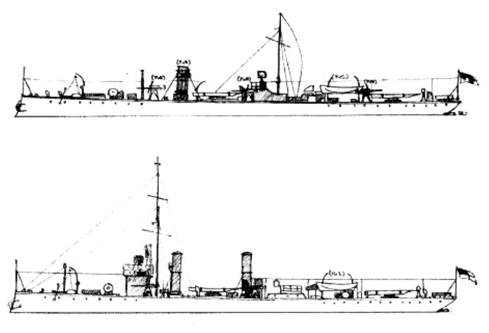 4 działa 47mm (1,85 in) L/40 3-funtowe (3 pdr) Hotchkiss Mk I QF; 3 wyrzutnie torped 356 mm (14 in)