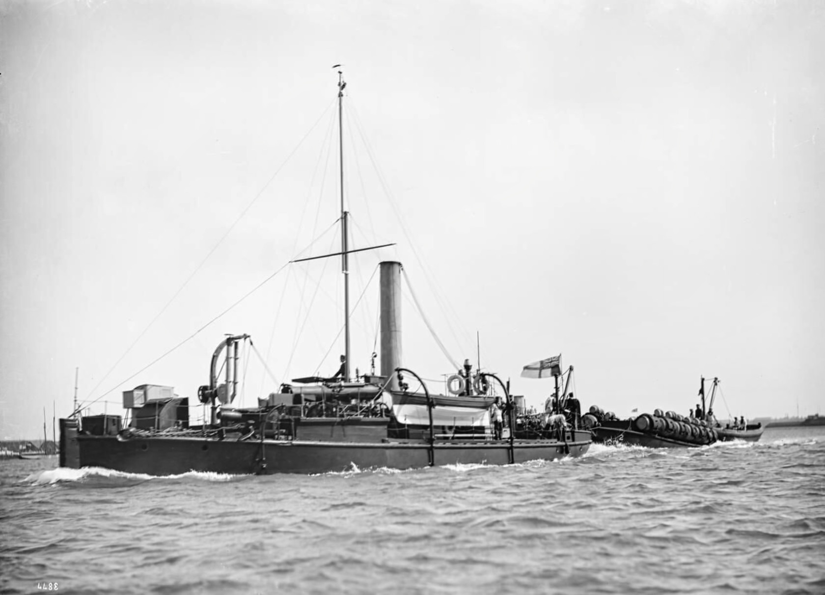 Okręt torpedowy HMS "VESUVIUS" był to pierwszy okręt brytyjski zaprojektowany specjalnie do wykonywania ataków torpedowych. Uważany za nieudany, został szybko wycofany z aktywnej służby, a tytuł pierwszego angielskiego torpedowca powszechnie przyznawany jest wodowanemu trzy lata później HMS "LIGHTNING”. |